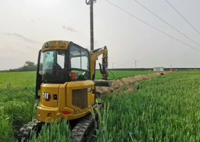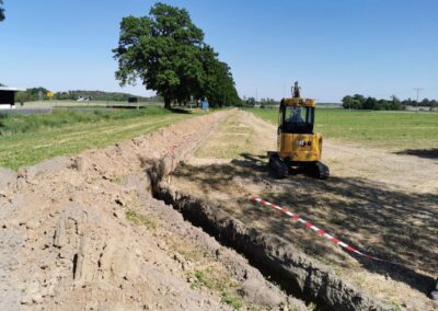 Nasze usługi obejmują także meliorację terenu, w tym kopanie rowów melioracyjnych, które mają na celu regulację poziomu wód gruntowych.